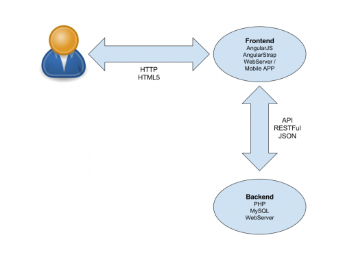 Os sitemas e website desenvolvidos com o avalanche possuem um frontend desenvolvido em AngularJS/AngularStrap, que pode ser disponibilizado através de um webserver ou através de um aplicatível móvel. O frontend se comunica com um backend em PHP através de APIs RESTFul.